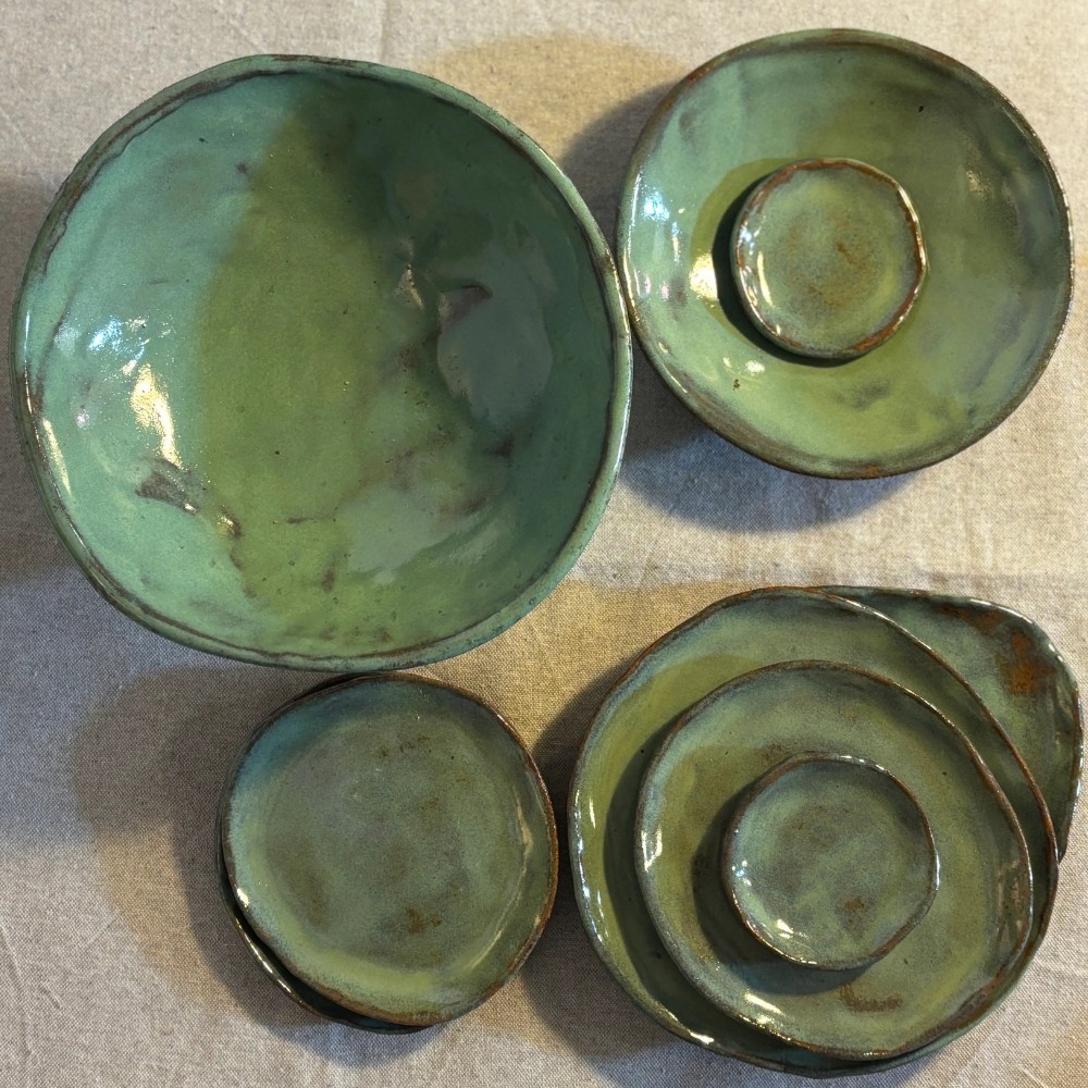 Zdjele i zdjelice stvaram kao spoj praktičnosti i skulpturalne forme, od manjih za grickalice do većih za posluživanje jela. Posebnu pažnju posvećujem proporcijama i ravnoteži između debljine stijenke i lakoće korištenja. Glazure koje sama razvijam omogućuju mi nijanse inspirirane morem, kamenom i mediteranskim svjetlom. Svaki set može se kombinirati, ali i funkcionirati samostalno kao upečatljiv detalj na vašem stolu ili polici.
