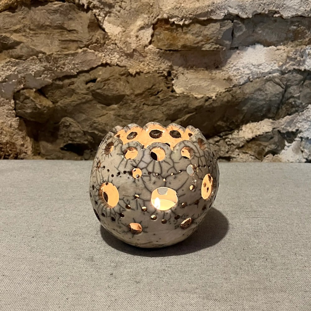 Keramičke lampe i svijećnjaci nastaju iz želje da svjetlo u prostoru bude mekano, toplo i posebno. Oblikujem ih s otvorima, perforacijama i reljefima koji stvaraju zanimljive sjene na zidovima. Svaki komad je ručno izrađen, pa je raspored svjetla uvijek drugačiji. Idealni su za intimne kutke doma, mediteranske terase ili kao naglasak u interijeru koji traži ručno rađen, umjetnički potpis.